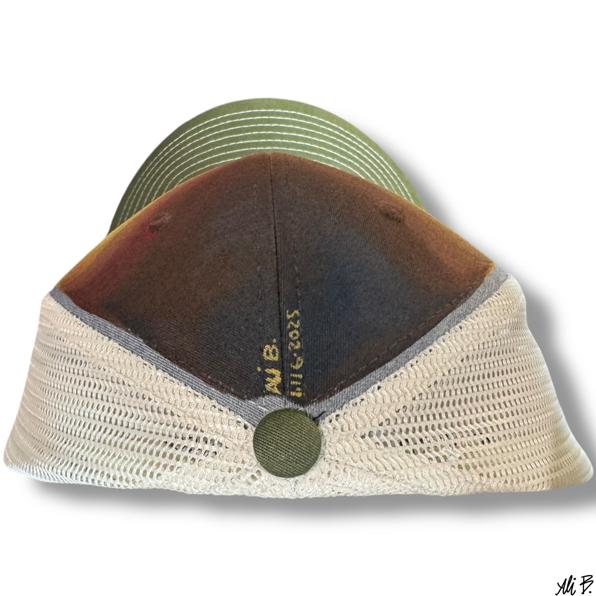 Recommended Care: Wash in the sink or shower with an old tooth brush and shampoo, in the top rack of the dishwasher over an upside down bowl. For well soiled hats you can even put it in the washing machine, please note this will soften up the mesh. Do NOT put your hat in the dryer, air dry and keep adventuring!