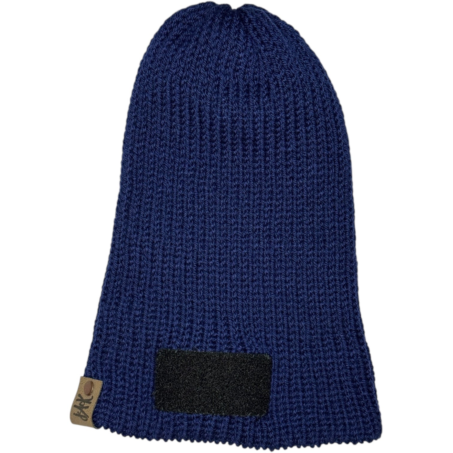 - Reversible- May be warn slouchy or flip inside out to fold over the bottom for a tighter fit, the velcro will always be outside of the beanie.