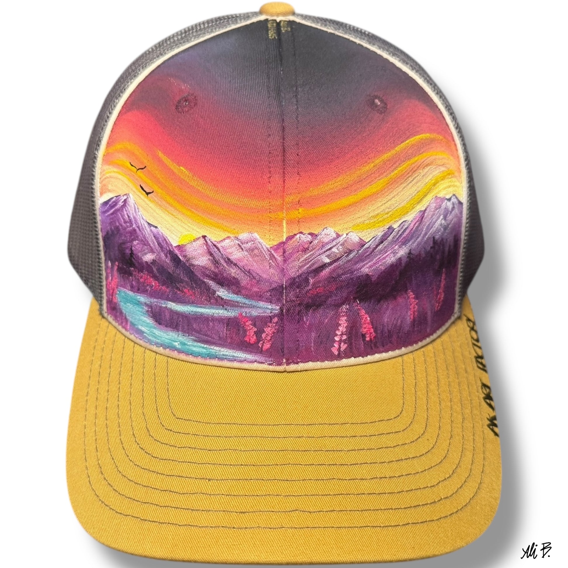 This is what we call wonderland- where the brilliant red-ish yellow sky dances above the magenta mountains and purple grass, with fireweed popping up to wave, “hello!”