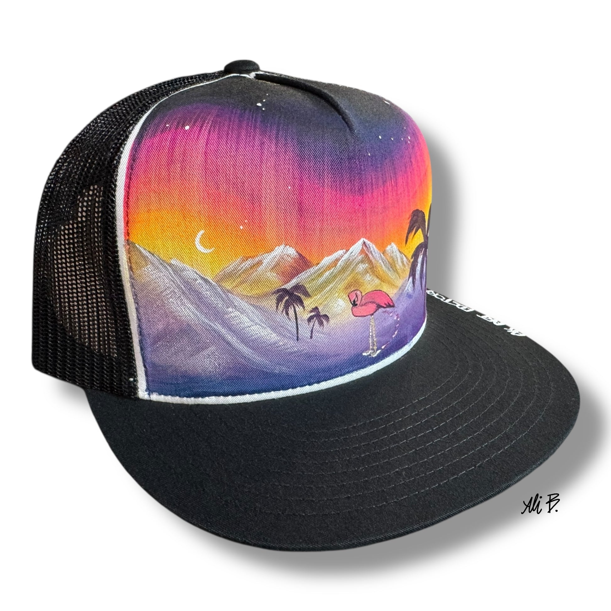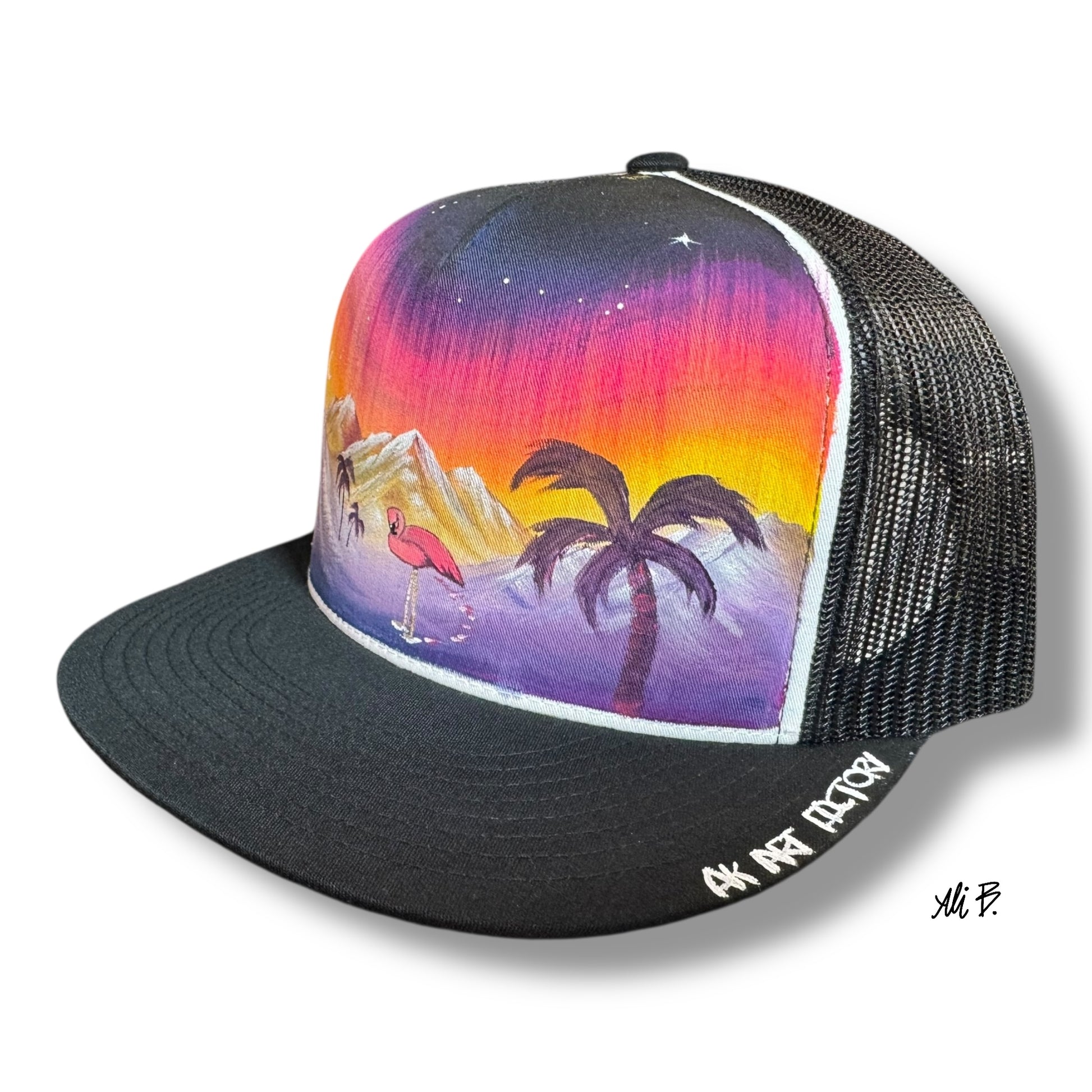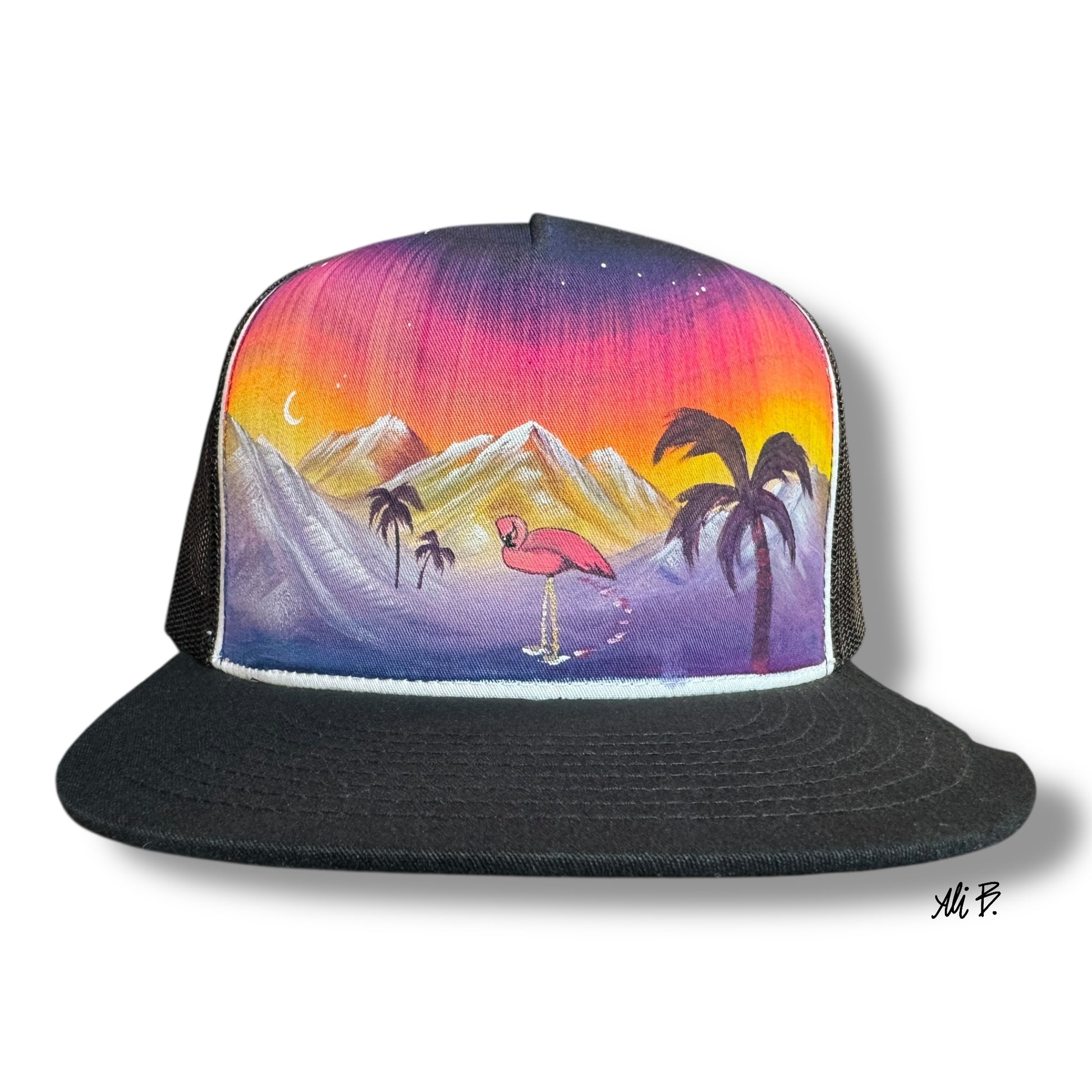 They say that flamingos get their color from eating shrimp, but in Alaska, did you know that they get their pink feathers from standing under the fluorescent northern lights? True facts, ask the experts! This hat has black light paint in the northern lights, making you the life of all of the dance parties.