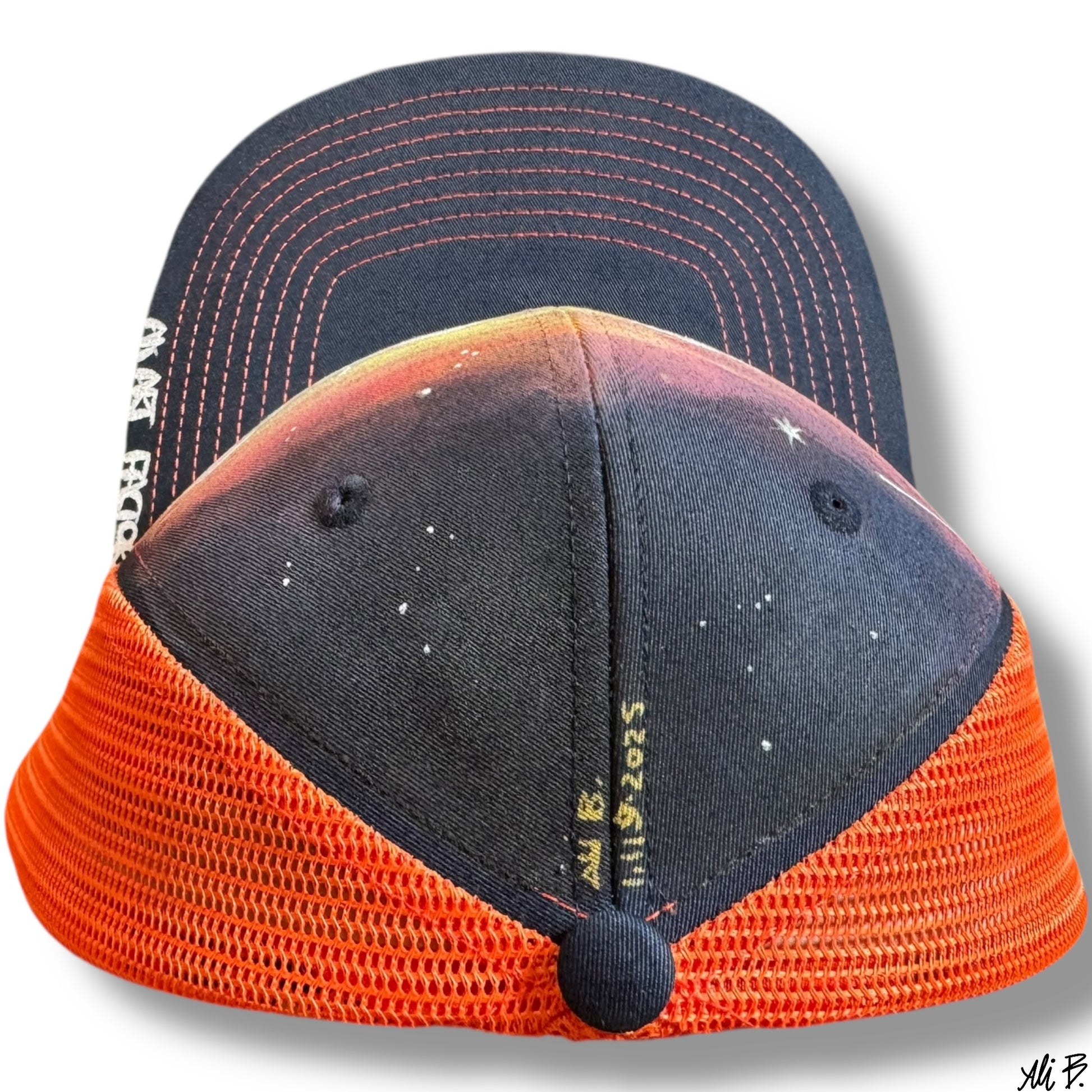 - Color: Neon orange mesh backing, navy blue bill with orange stitching