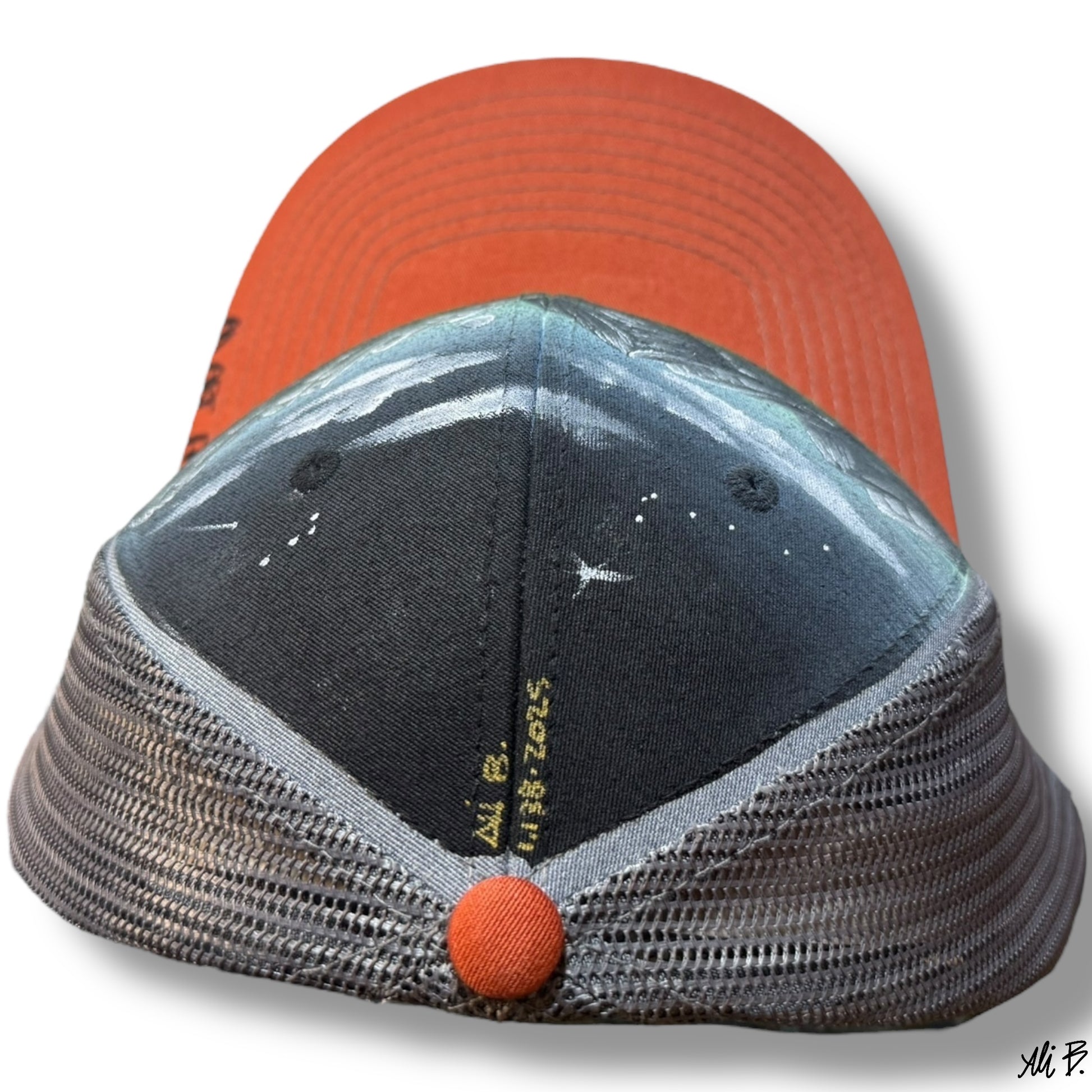 - Color: grey mesh backing, burnt orange bill with grey stitching