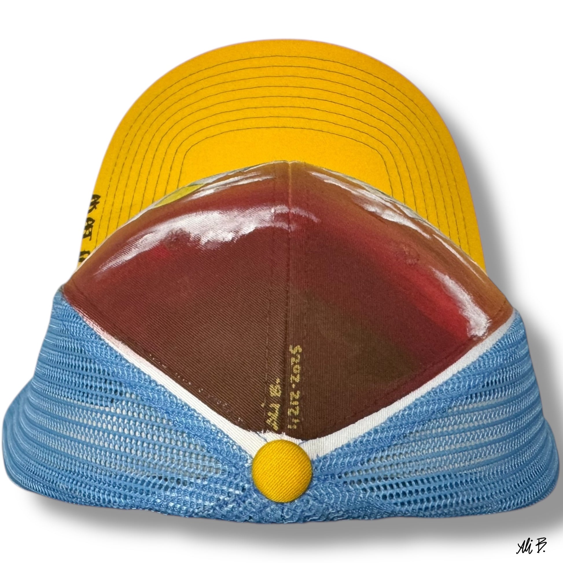 - Color: light blue mesh backing, yellow bill with blue stitching