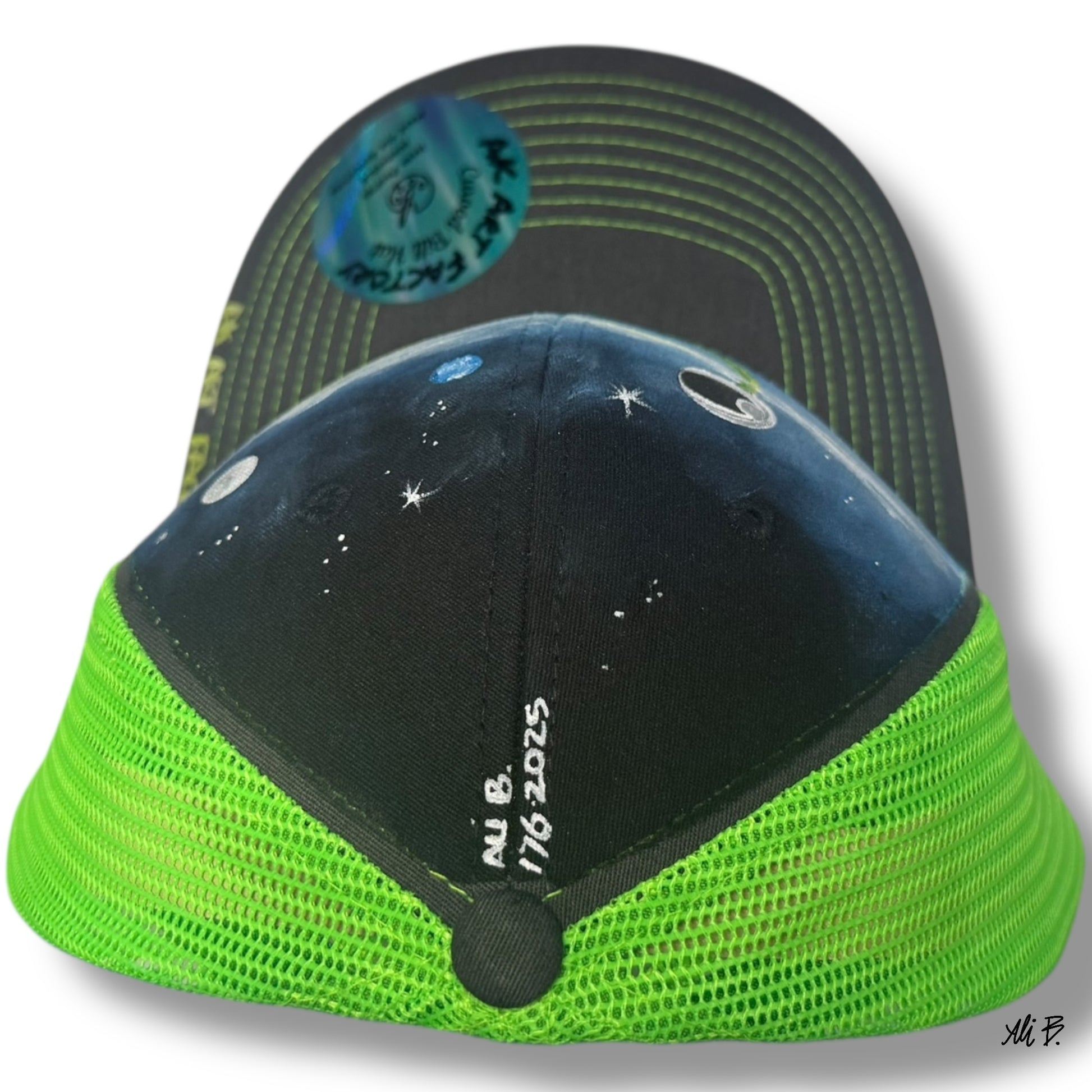 - Color: neon green mesh backing, dark grey bill with green stitching