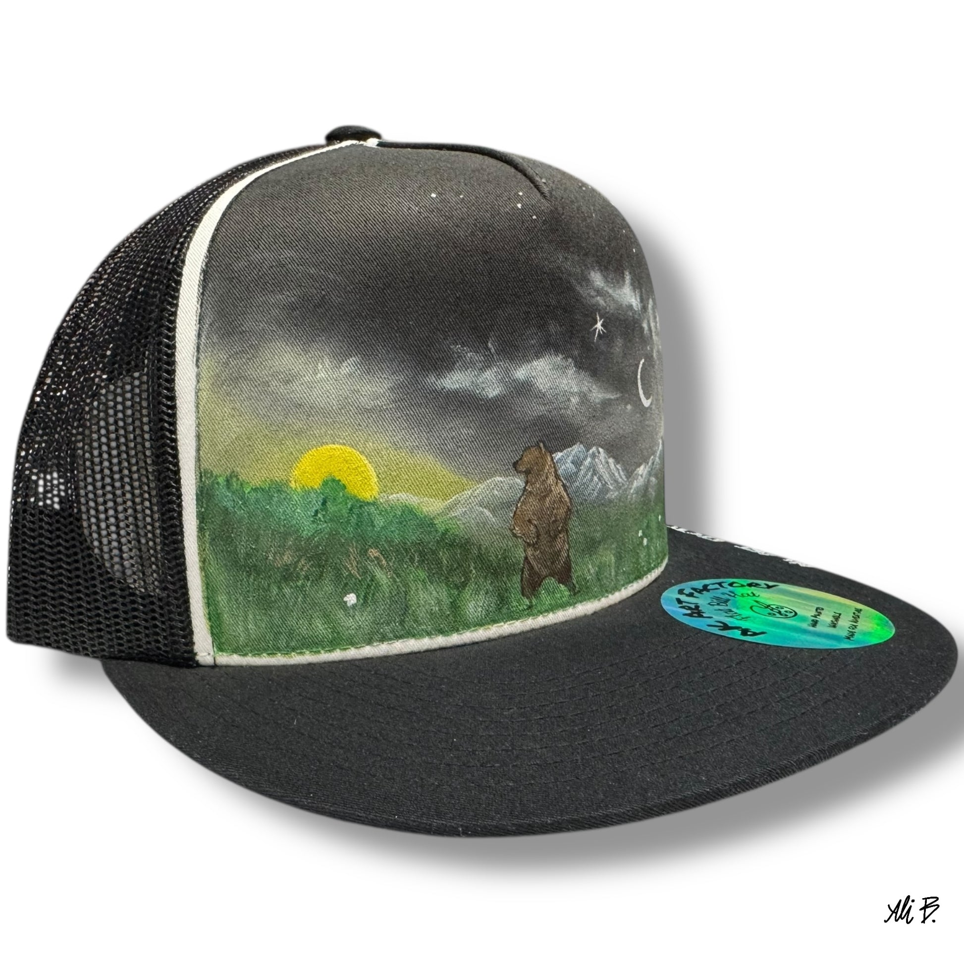 - Color: Black mesh backing with a black bill
