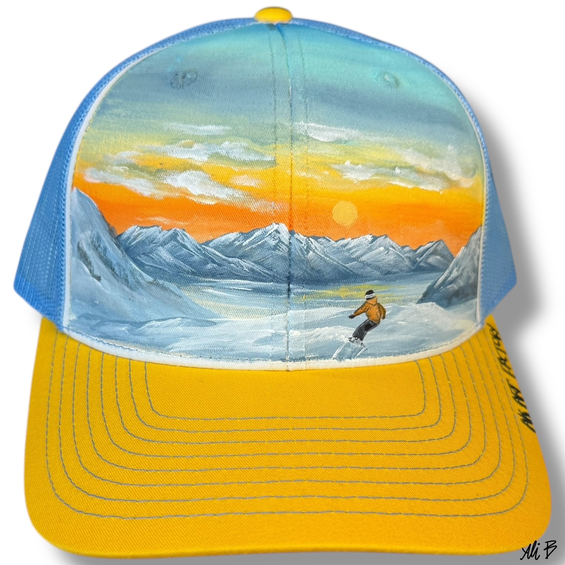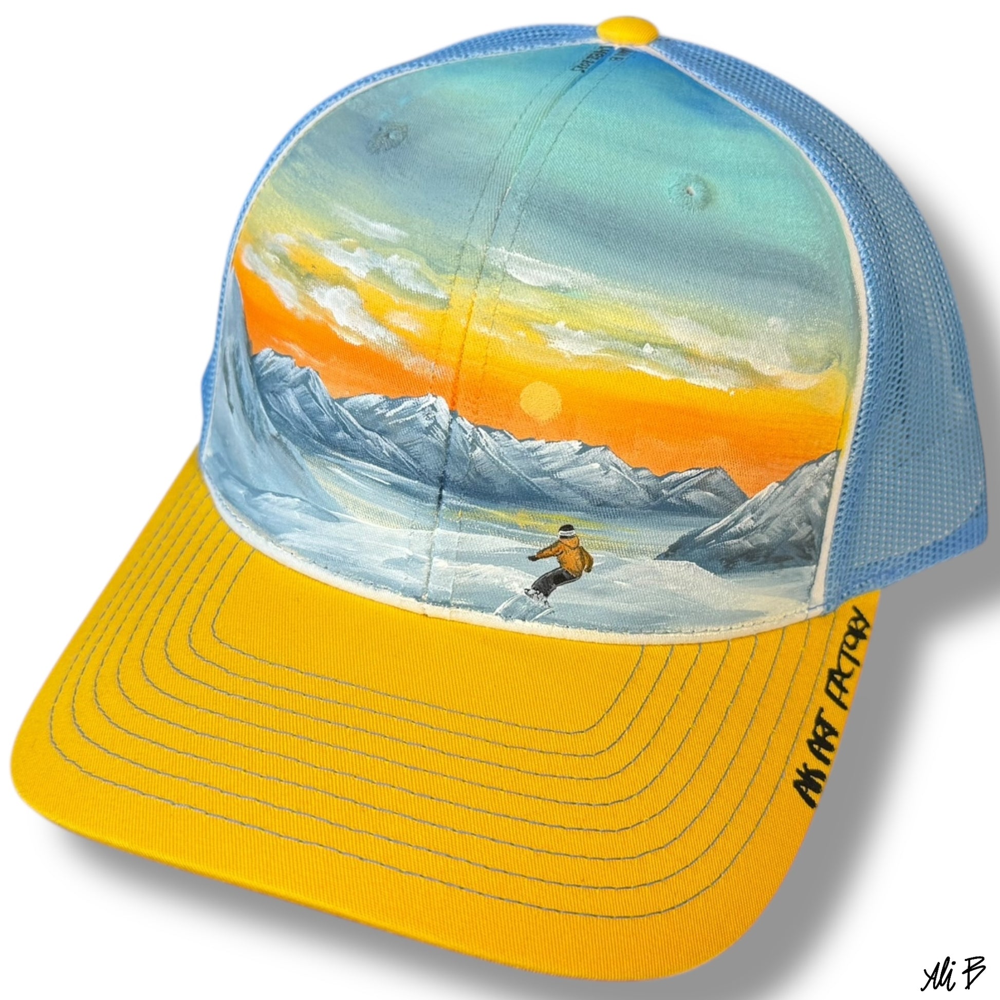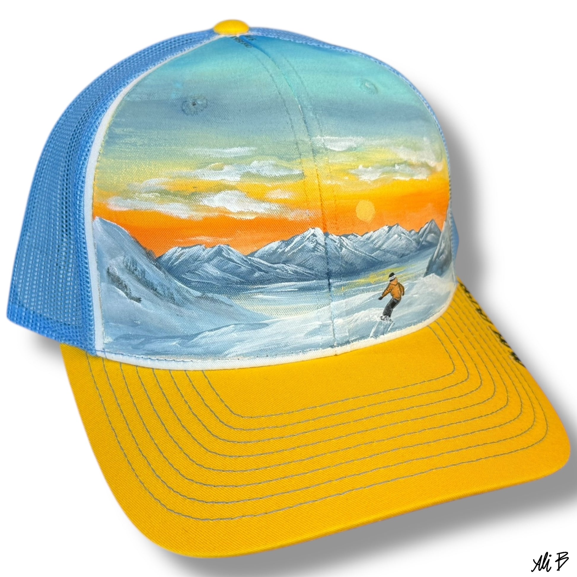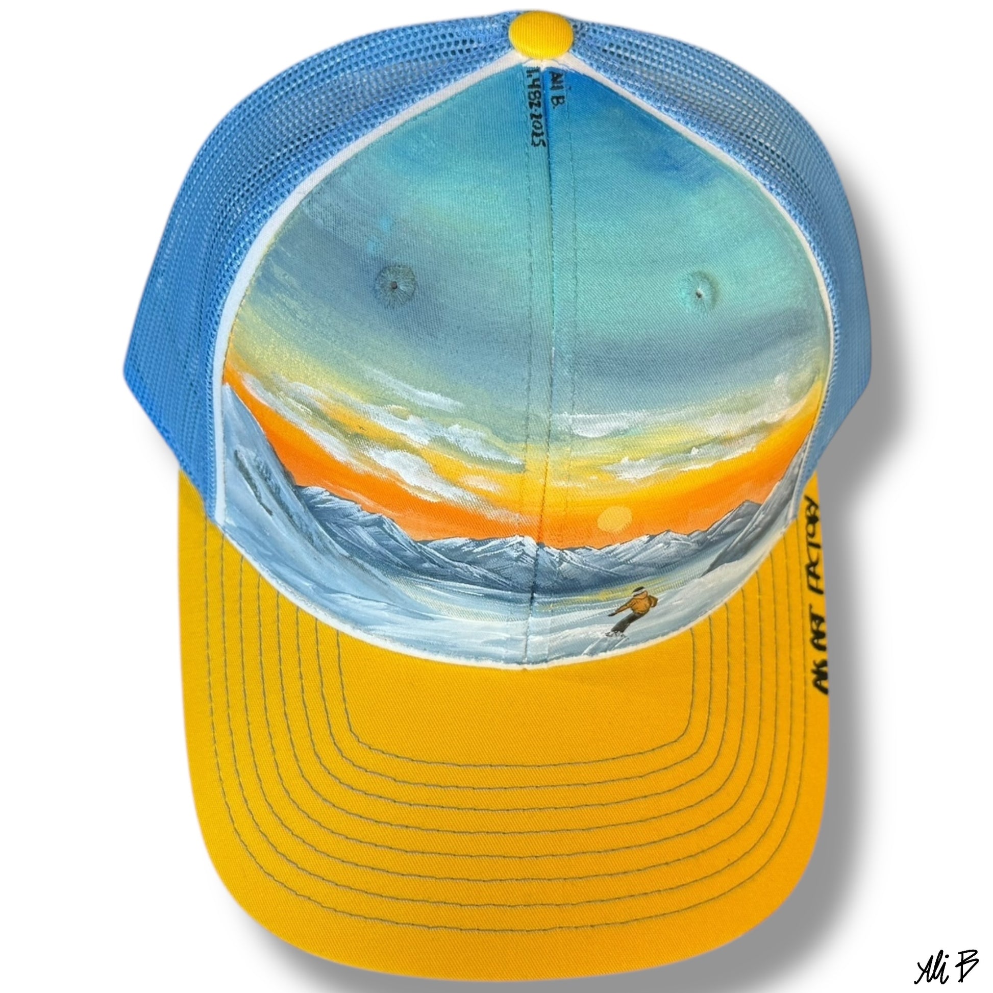 - Color: Light blue mesh backing, yellow bill with blue stitching